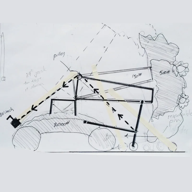Drawings were needed to establish the steering mechanism design, raising mechanics, and specifications for the steel fabrication.